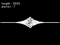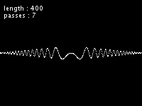 Each picture represents the shape of the kernel, "length" is the number of samples on a 44100Hz basis, "passes" is the number of times the filter is applied.