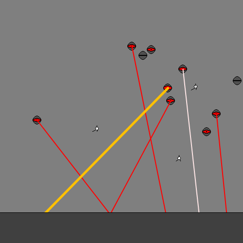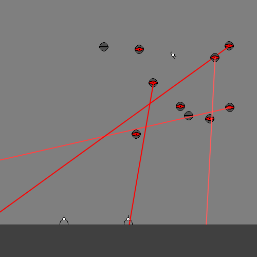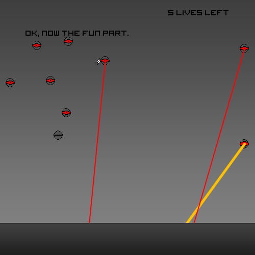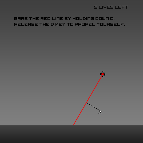 I like the idea that the enemy lazers were "killing" you but you could also grab them to jump higher (the character uses a "rubber-style" string, not a "whimp").