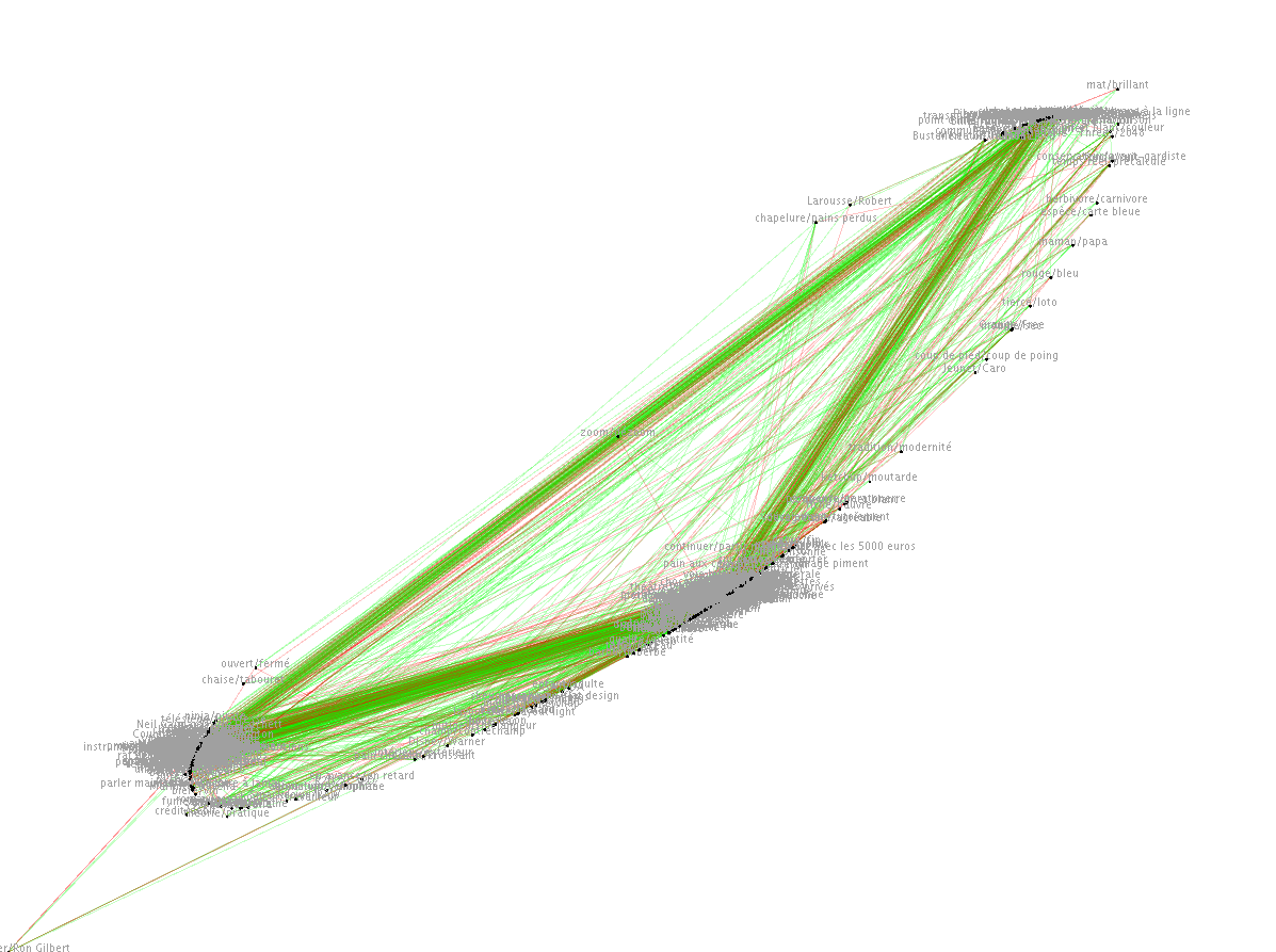 Then I coded a web game that randomly picks two of them and asks you to associate them in one way or another, and keep track of all the answers in a database.
